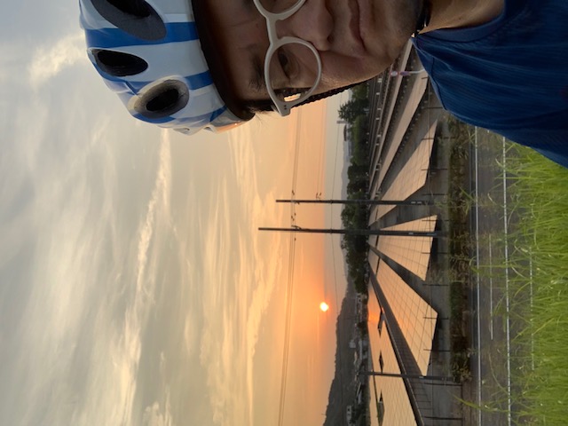 そして綺麗な朝日も 土手に輝いていました。