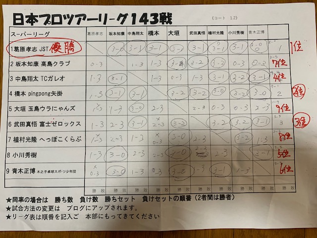 卓球バカのブログです プロツア-リーグの記録です