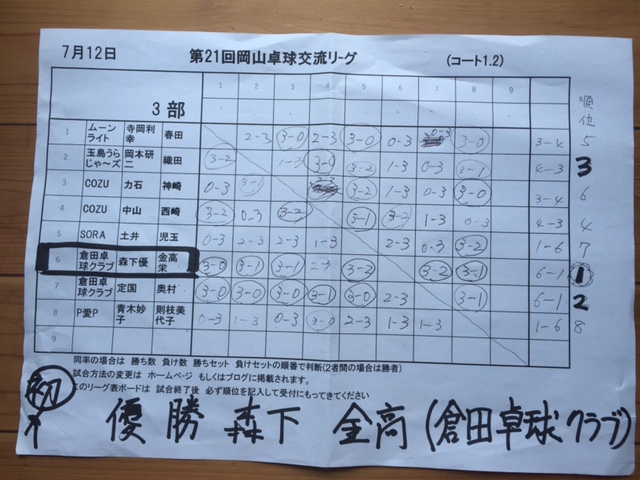 ← 7/12ミックスリ-グ 4部 決勝リ-グ結果 HOME 第2回船穂卓球スポ-ツ少年団カップ 2部結果 →