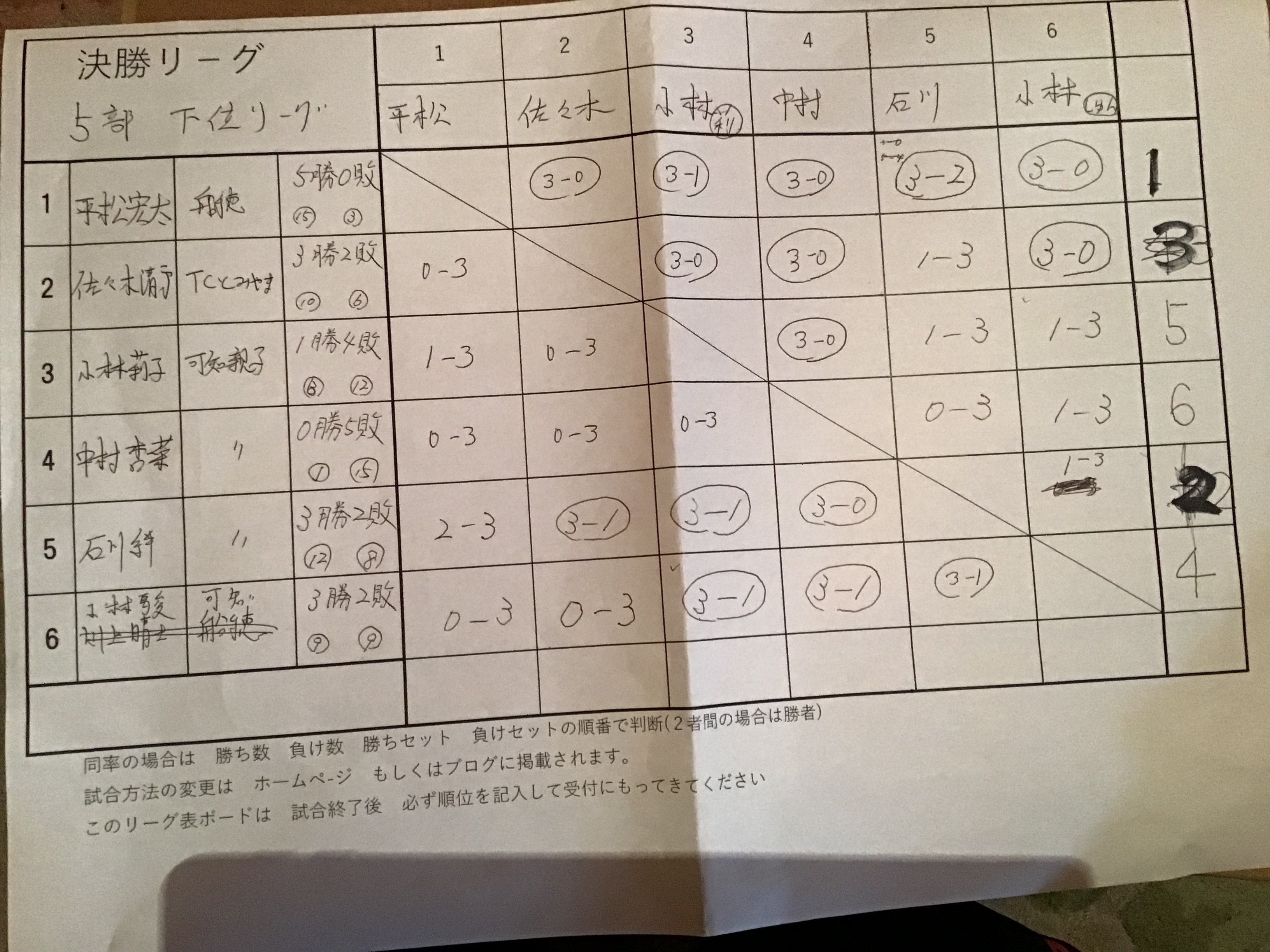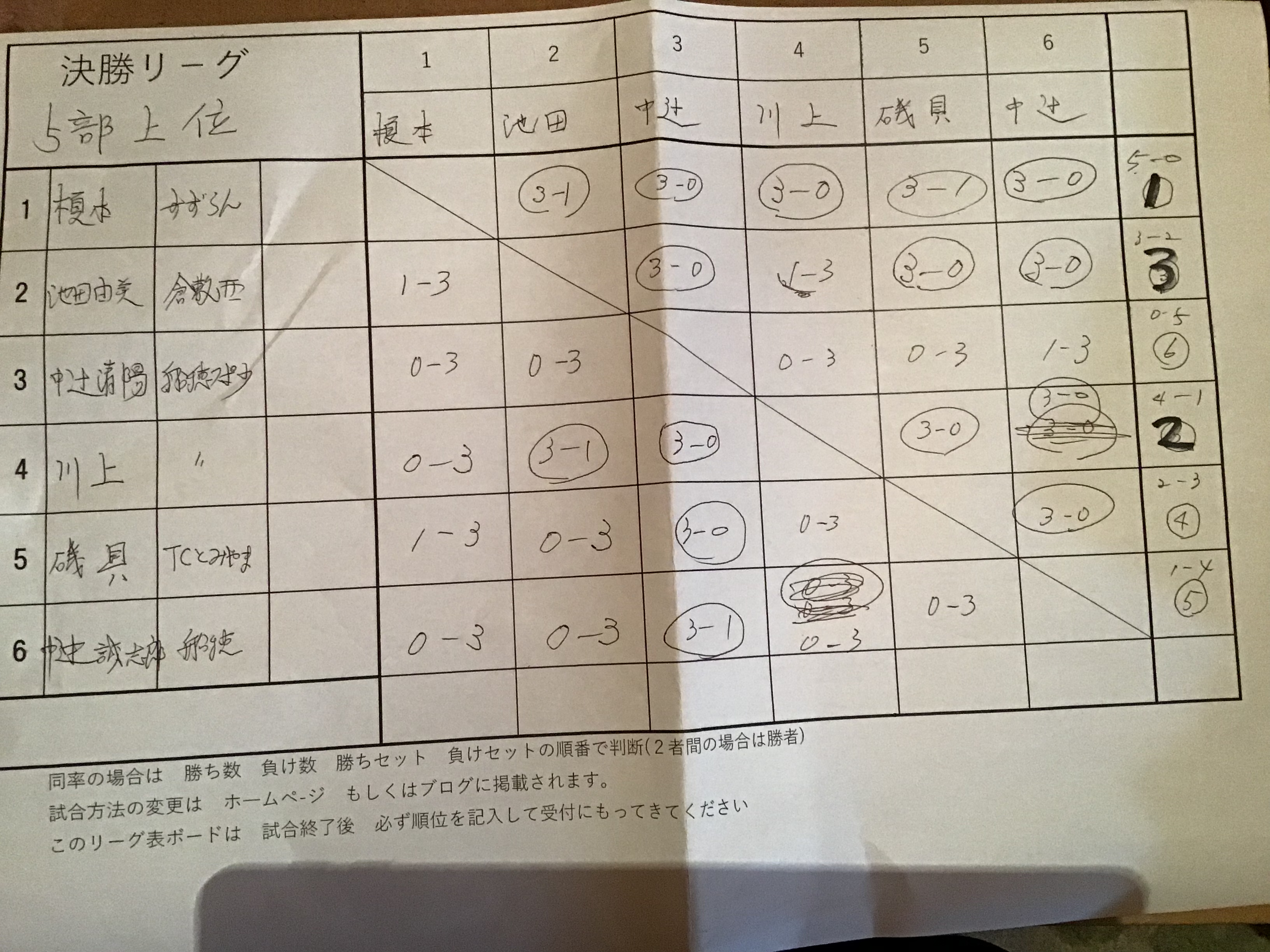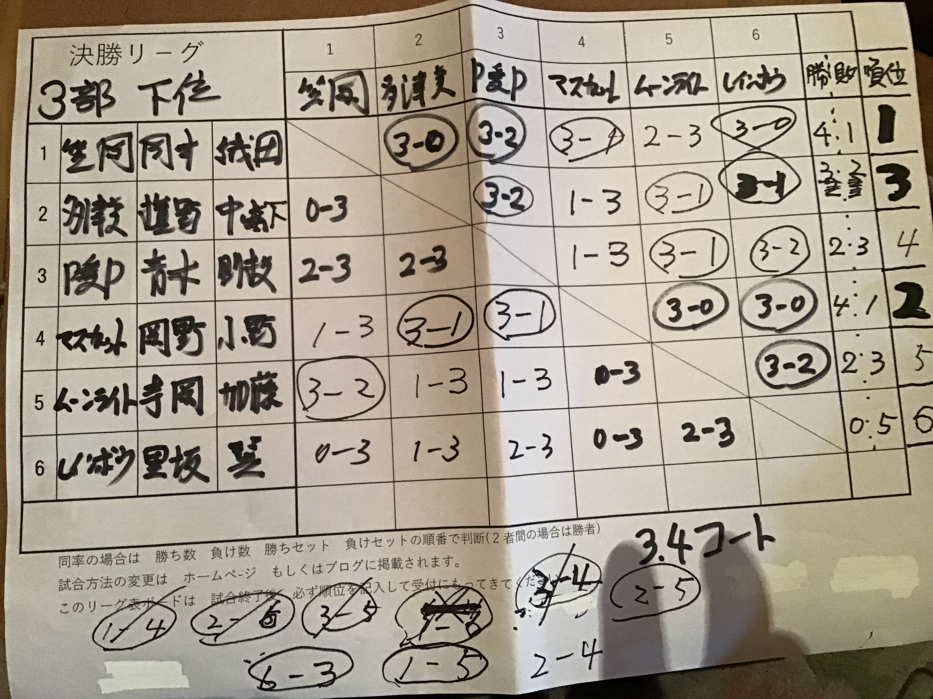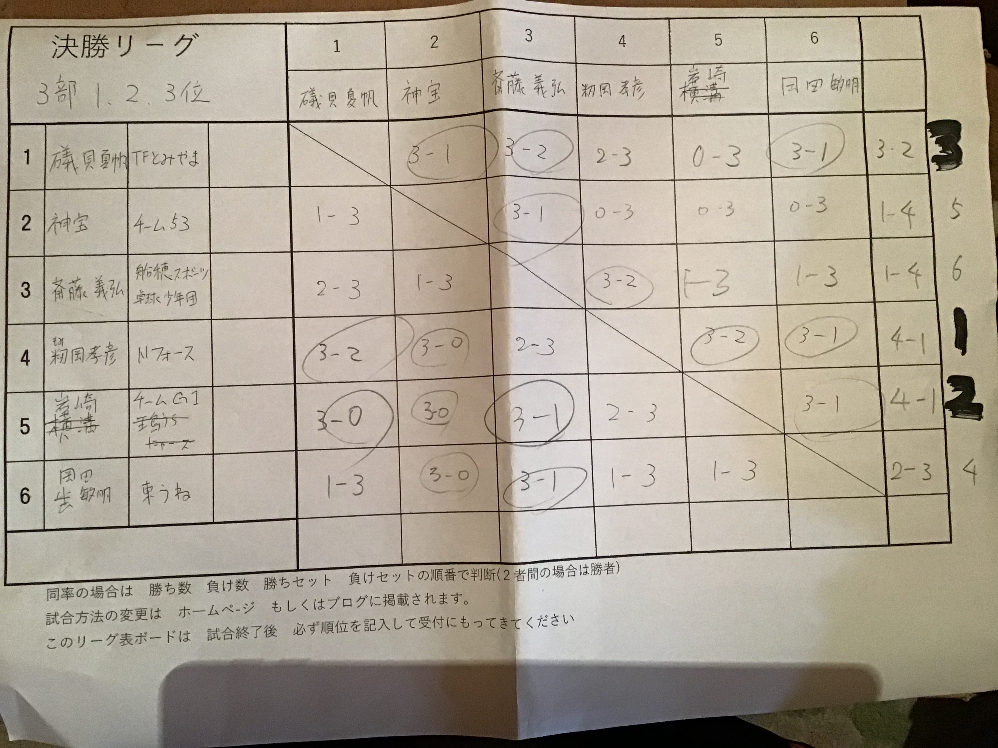 | 予選上位1.2.3位選手 決勝リ-グ | ||