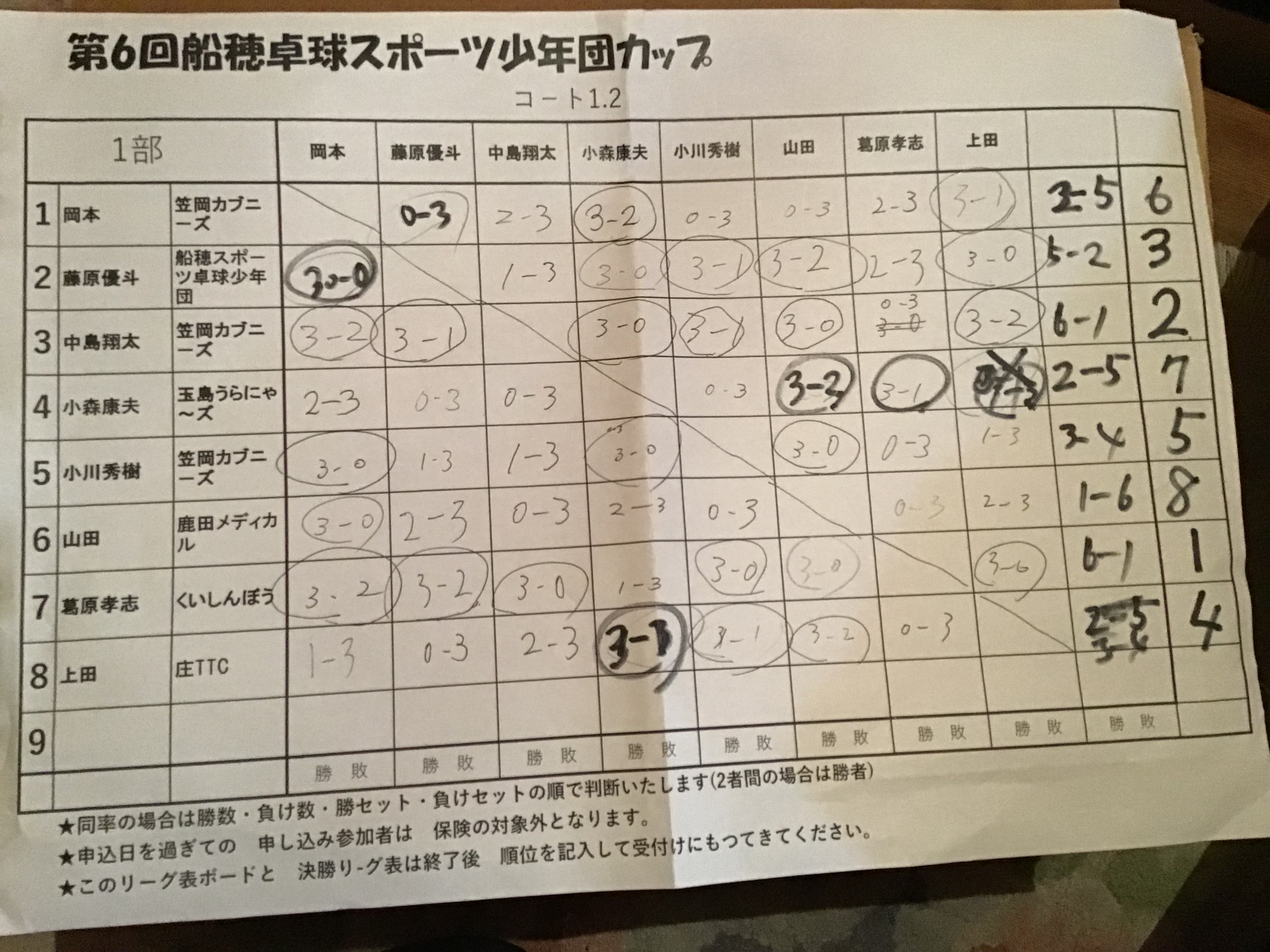| 1 | 福井祐哉 | 船穂スポ-ツ卓球少年団 |