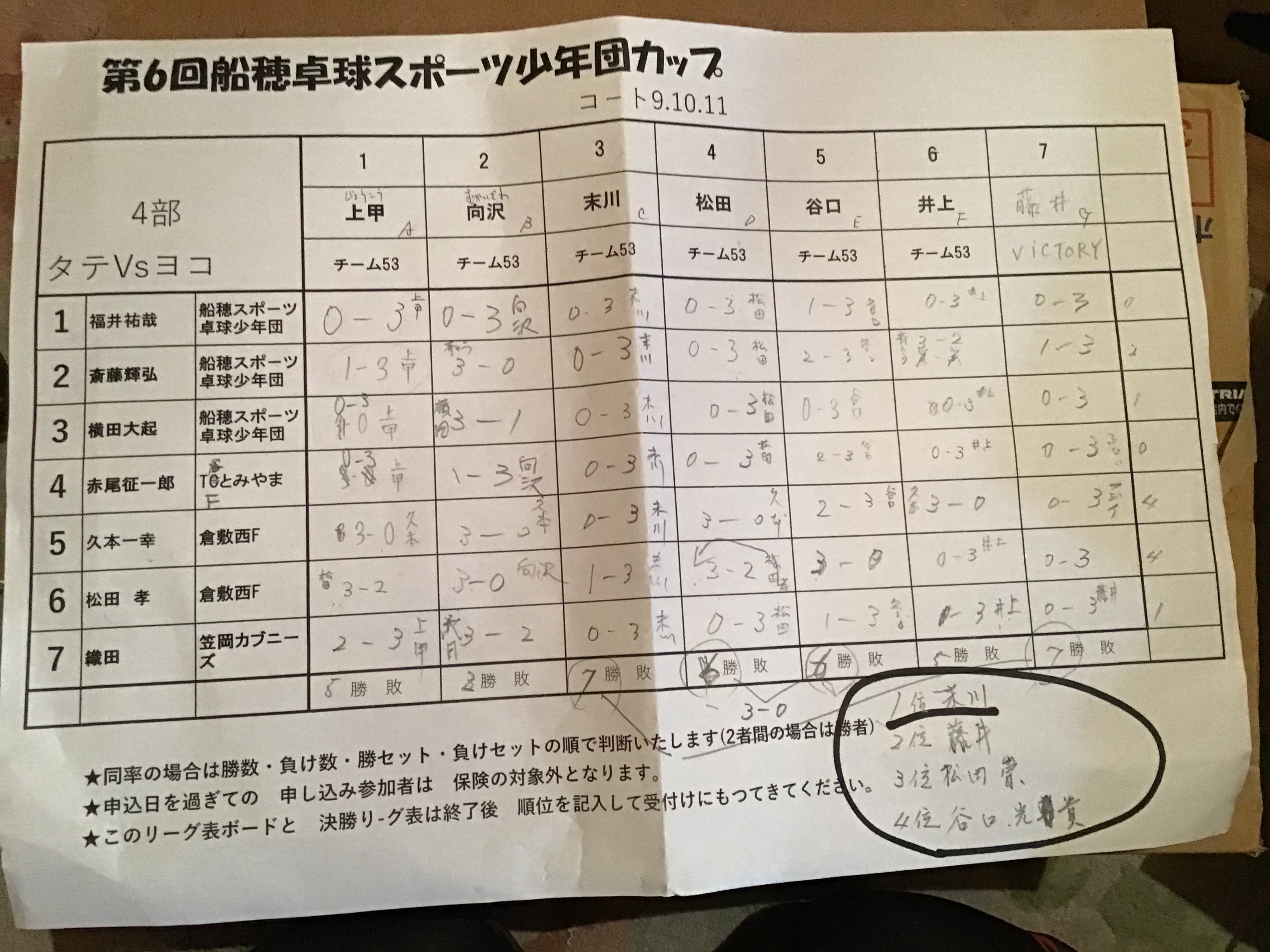 | 11/23 第6回船穂卓球スポーツ少年団カップVer12.0 | ||