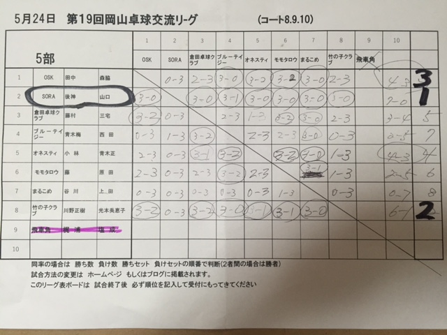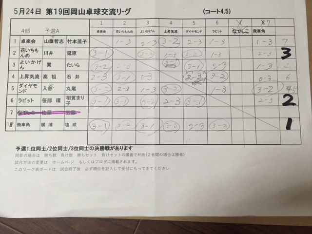 5/24 岡山卓球交流ミックスリ-グ 参加予定ぺア Ver15.0