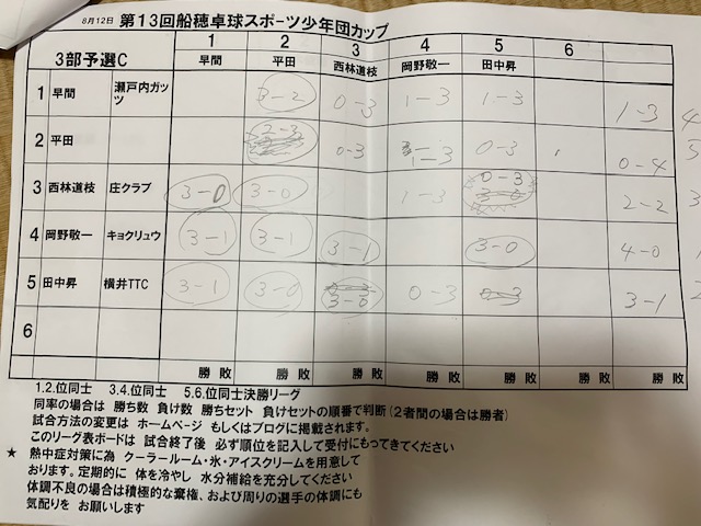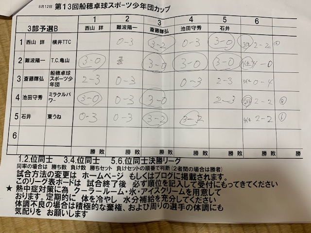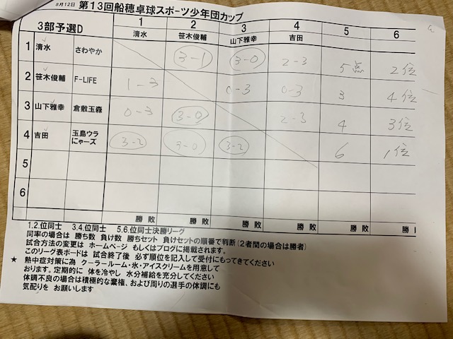 | 協賛 船穂卓球スポ-ツ少年団 | ||||