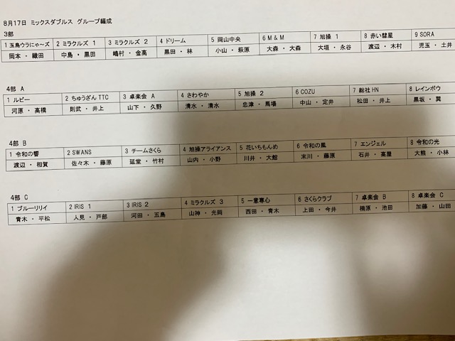 | Aクラス 卓球初めて2年程度の初心者(1コート) | ||