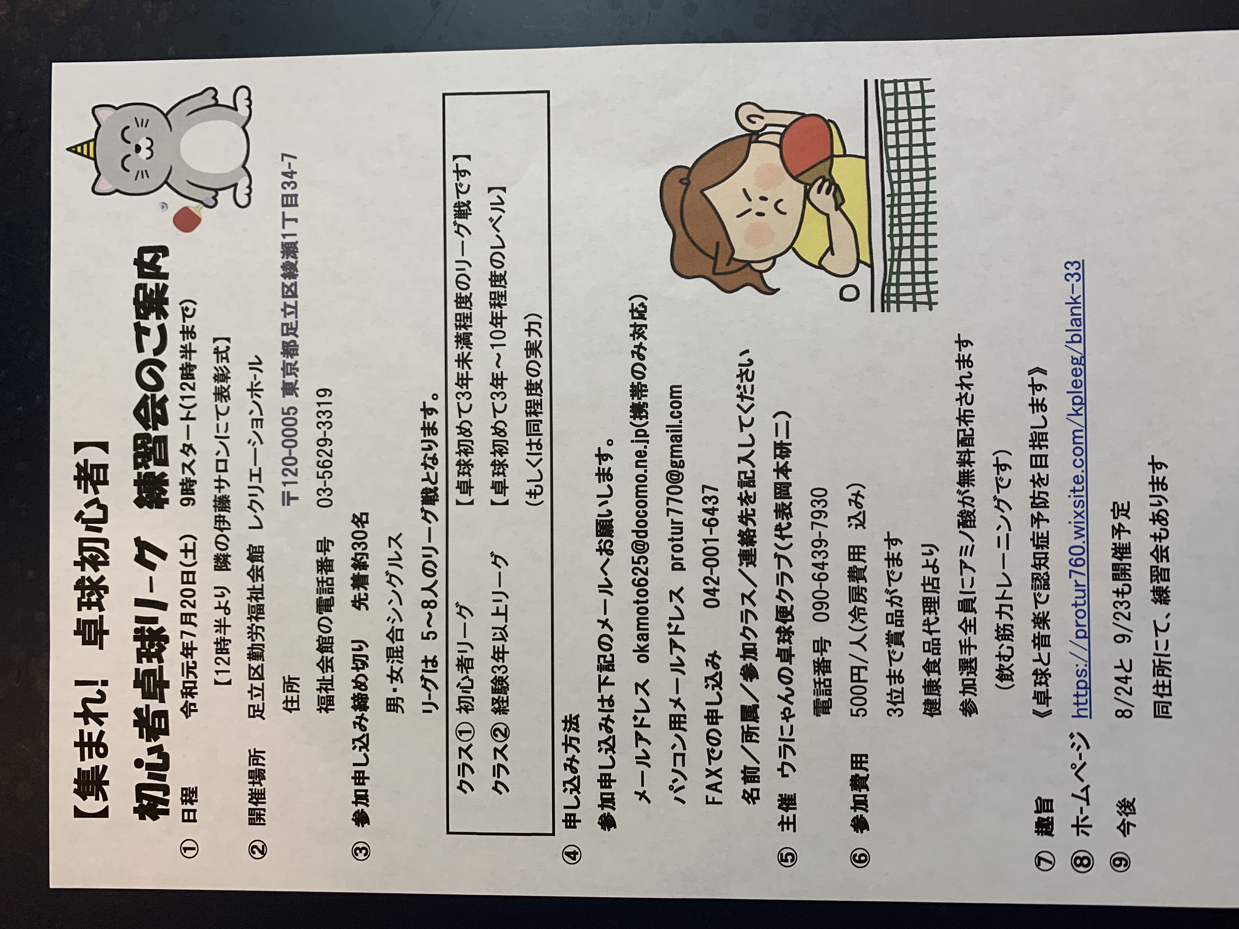 同じスタンスで 初心者の為の卓球大会を