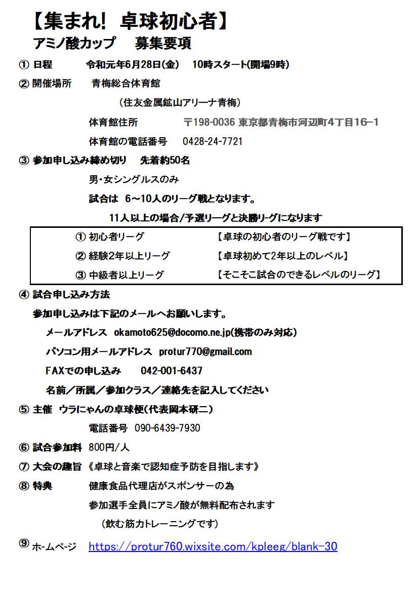 シニア卓球リ-グ や 大会イベントをきめ細やかに