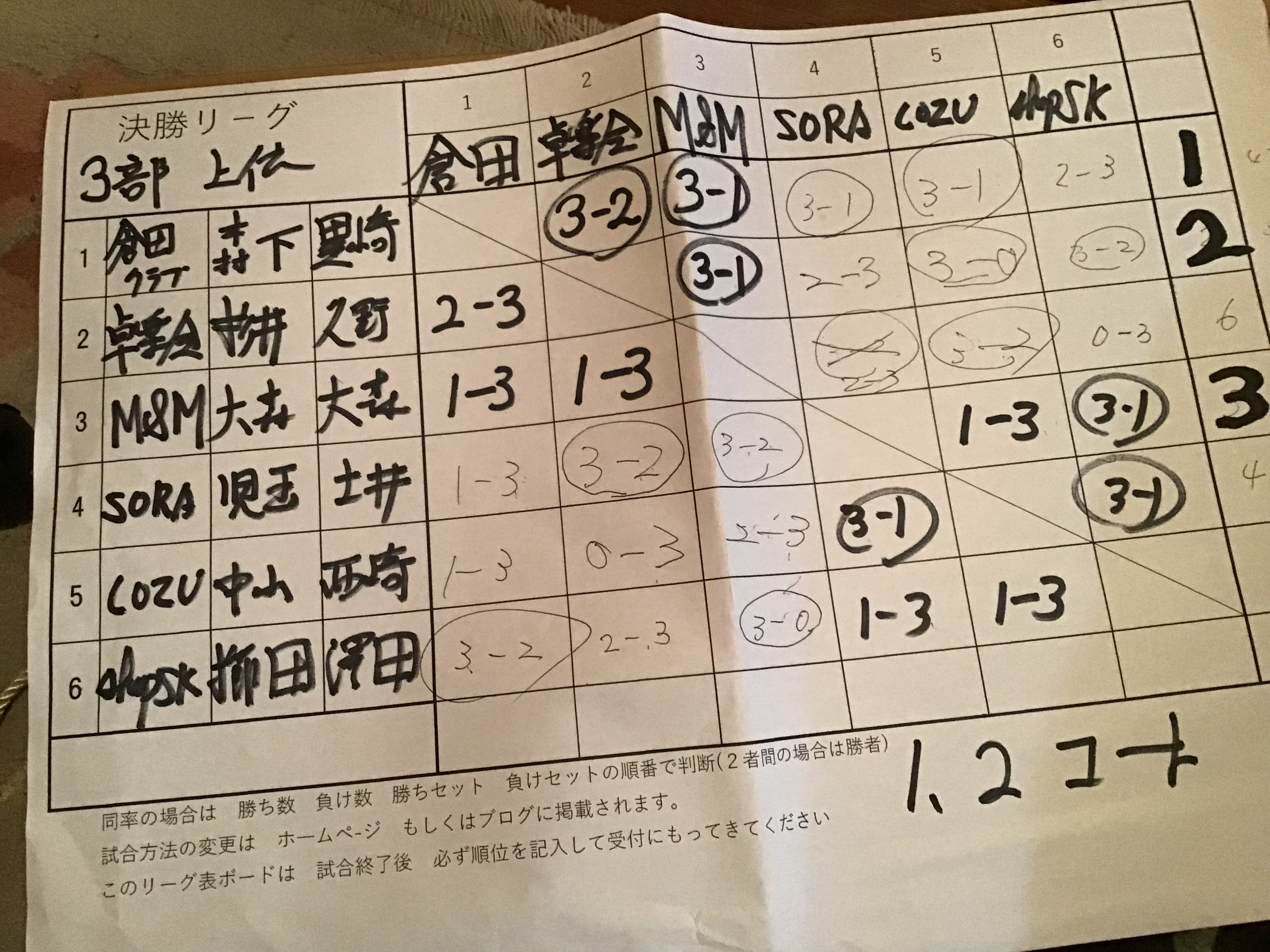 | 予選上位1.2.3位選手 決勝リ-グ | ||