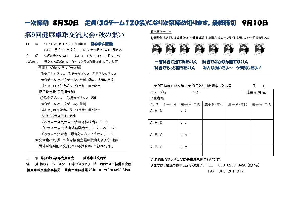 日程 9月15日(土) 9時30分スタ-ト