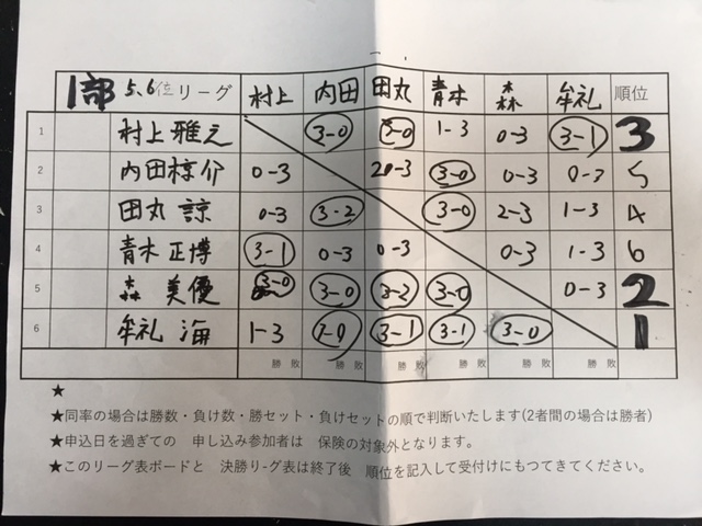 1 羽崎真悟 倉田卓球クラブ