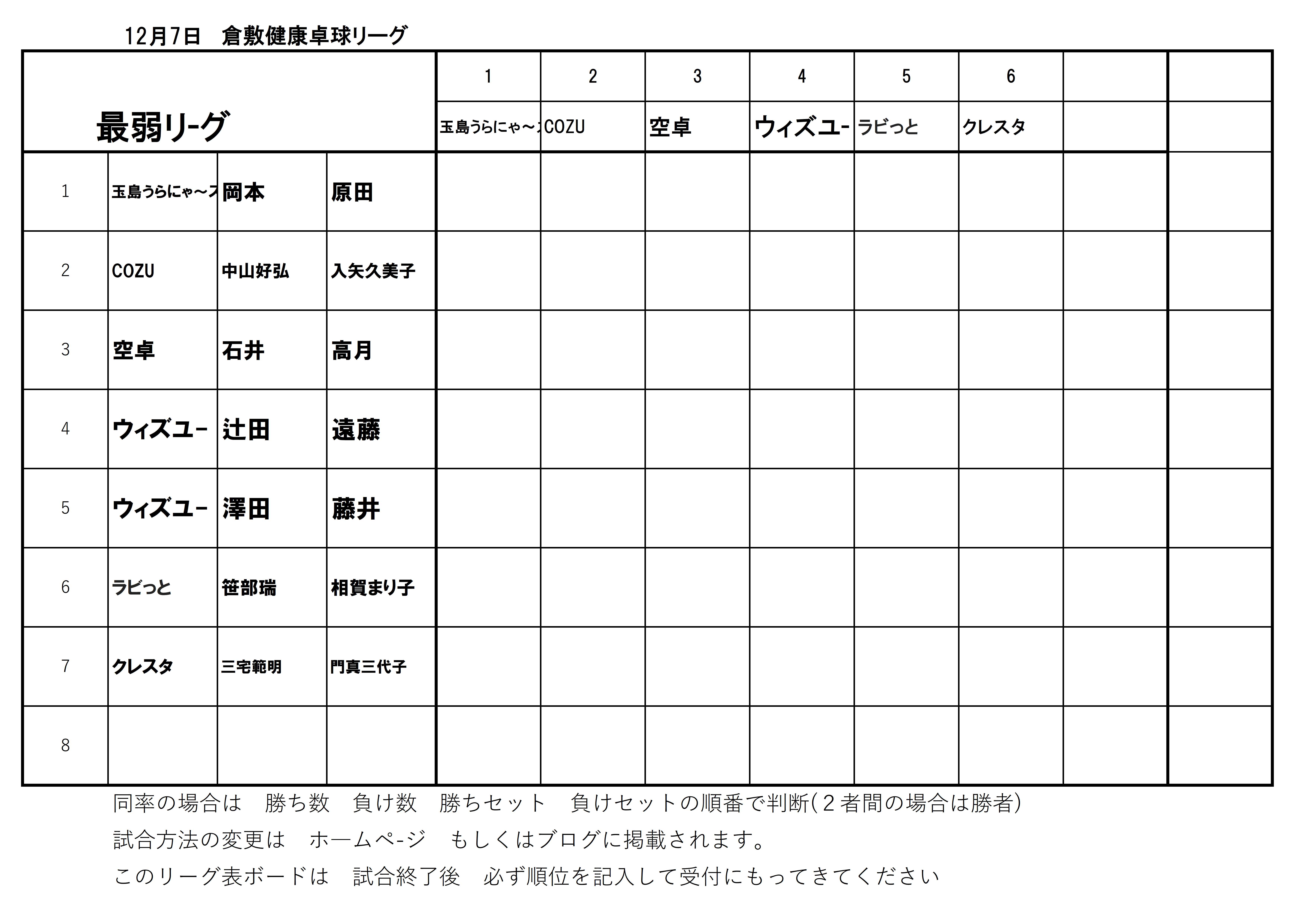 12月21日 岡山健康卓球リーグ参加予定ペア Ver22.0