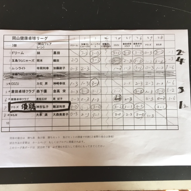 11月16日 岡山健康卓球リーグ参加予定ペア Ver12.0