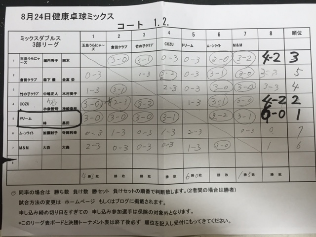 8月24日第11回健康ミックスリ-グ VER15.0