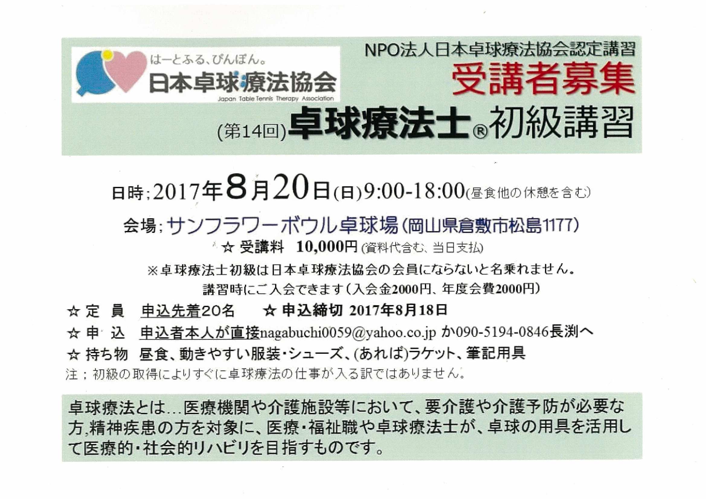 健康卓球交流会事務局 TEL080-6260-3490 FAX086-281-0171