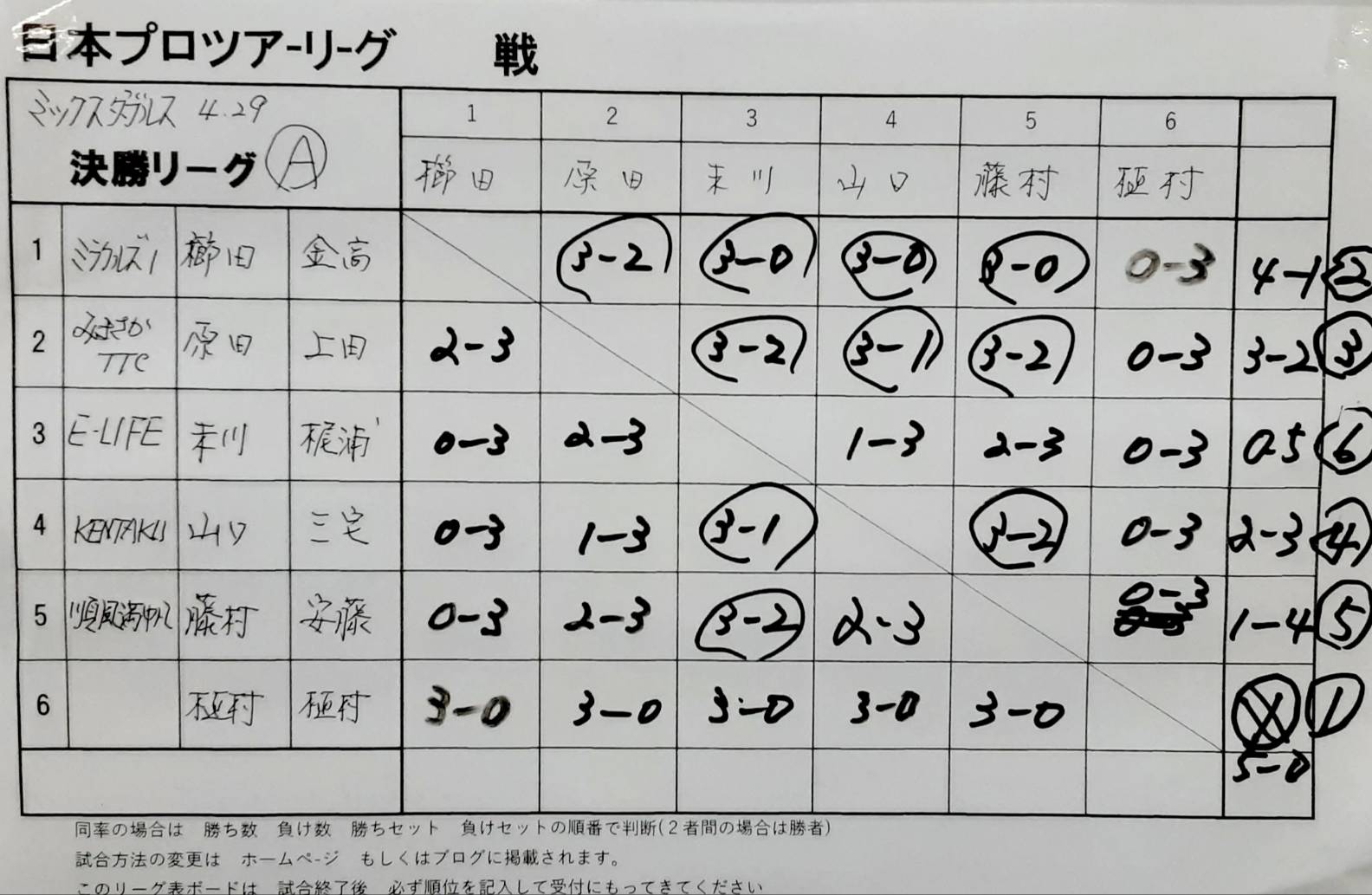 卓球バカのブログです プロツア-リーグの記録です