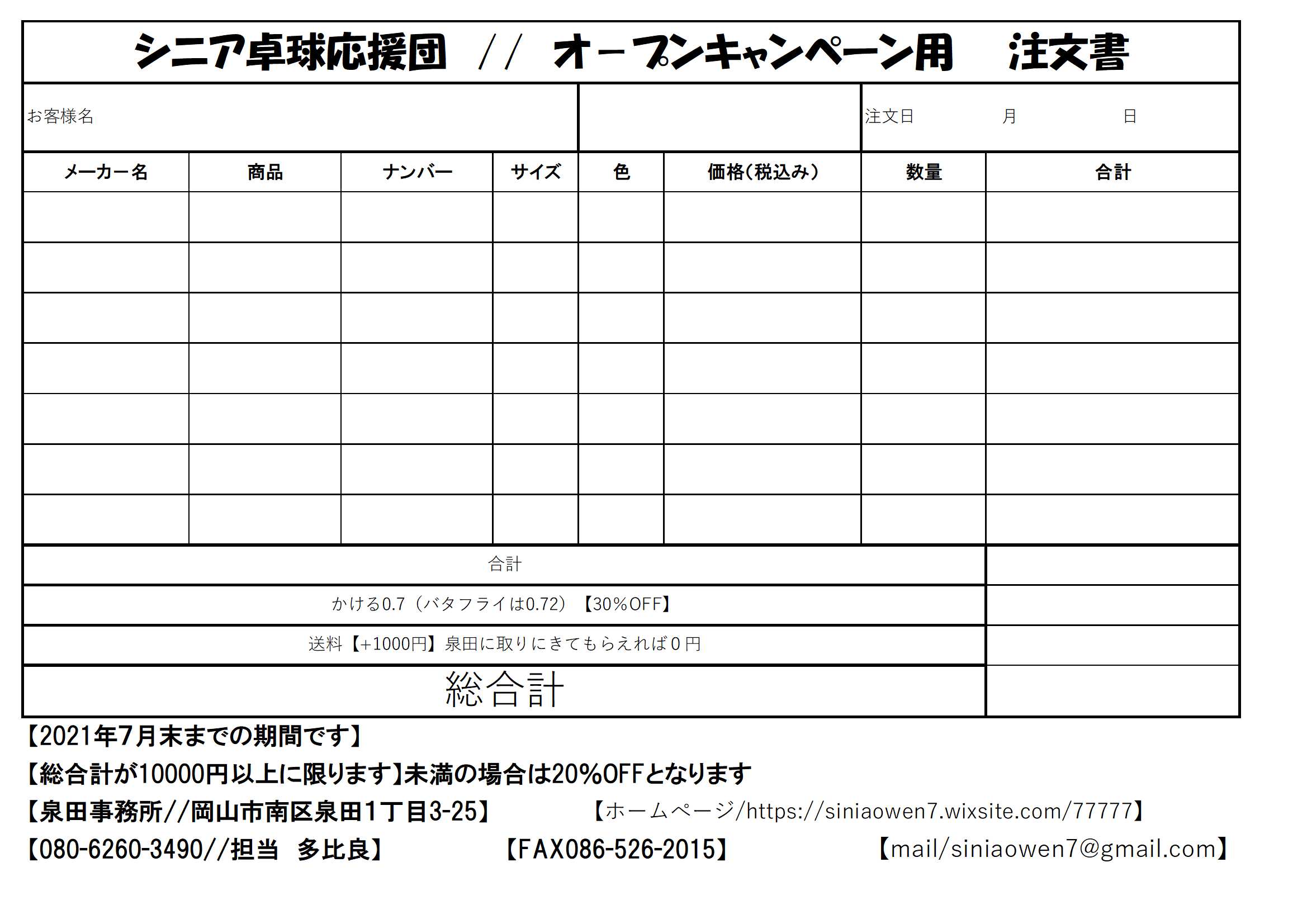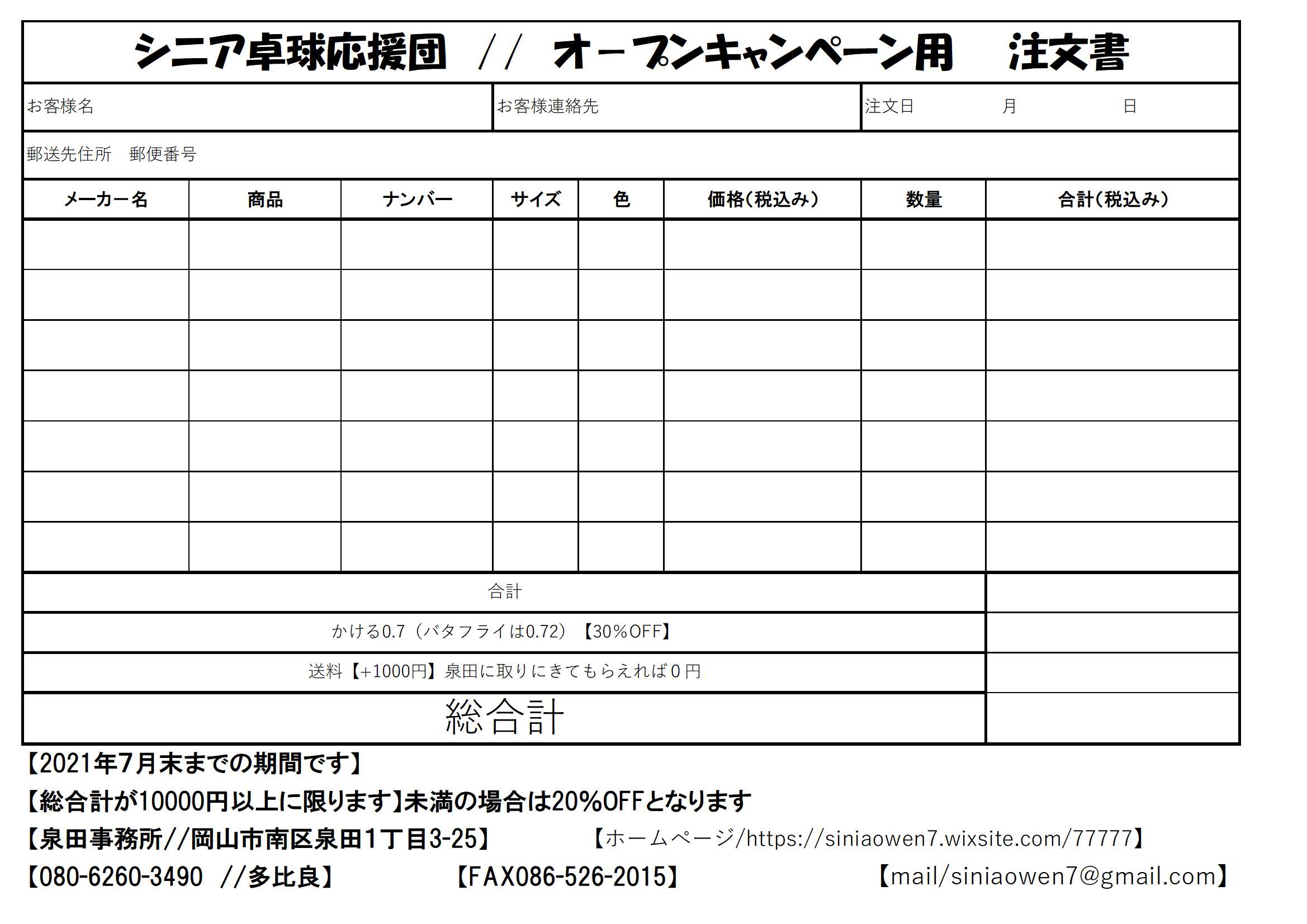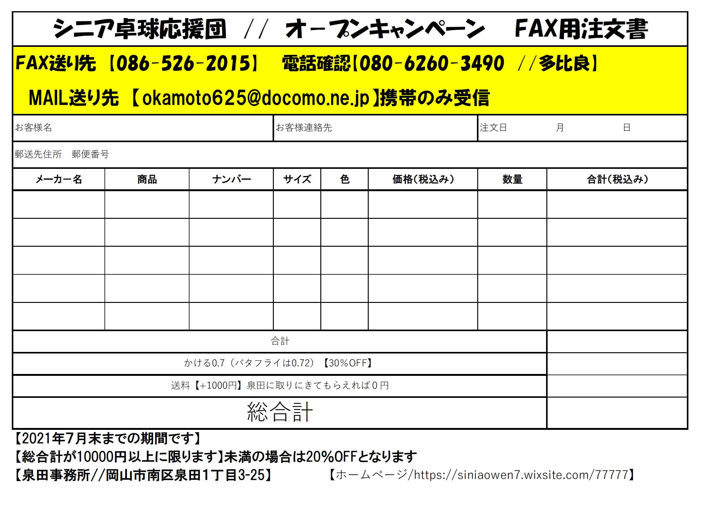 注文書をFAXもしくは メールで送って