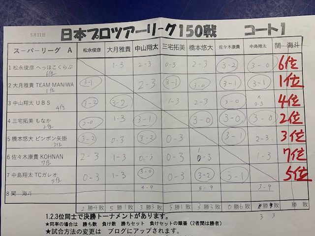 卓球バカのブログです プロツア-リーグの記録です