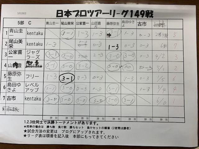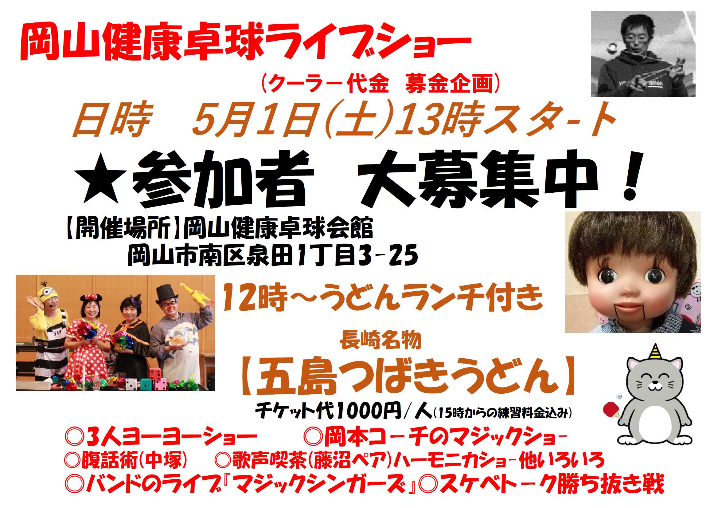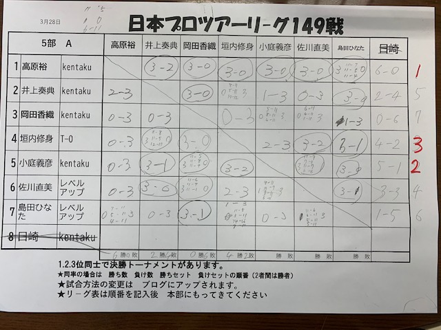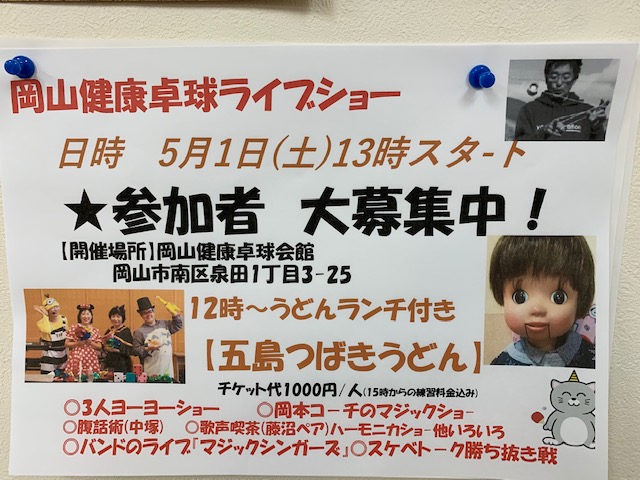 3 1.2部 4/18(日曜日)9時~ 24名限定(岡山健康卓球会館)
