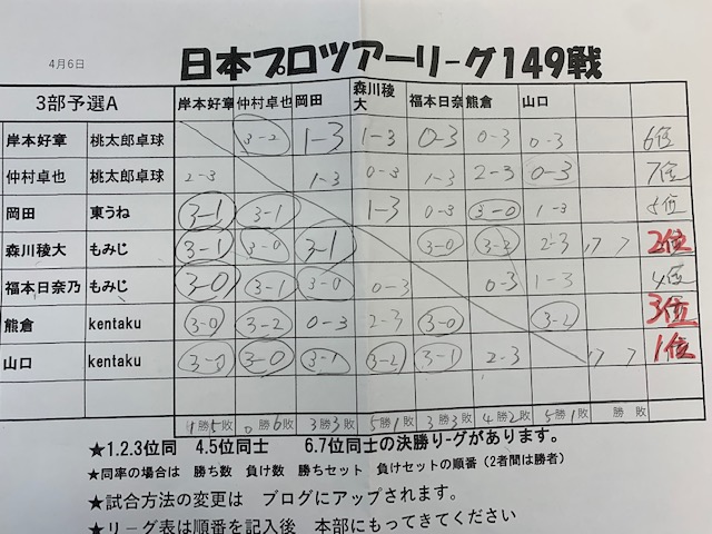 卓球バカのブログです プロツア-リーグの記録です